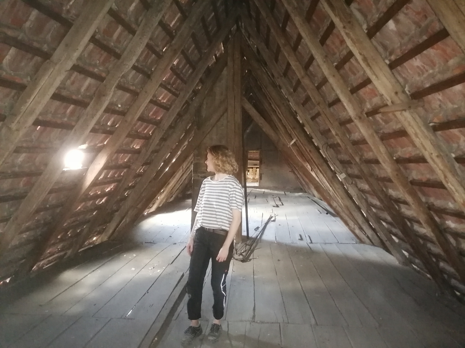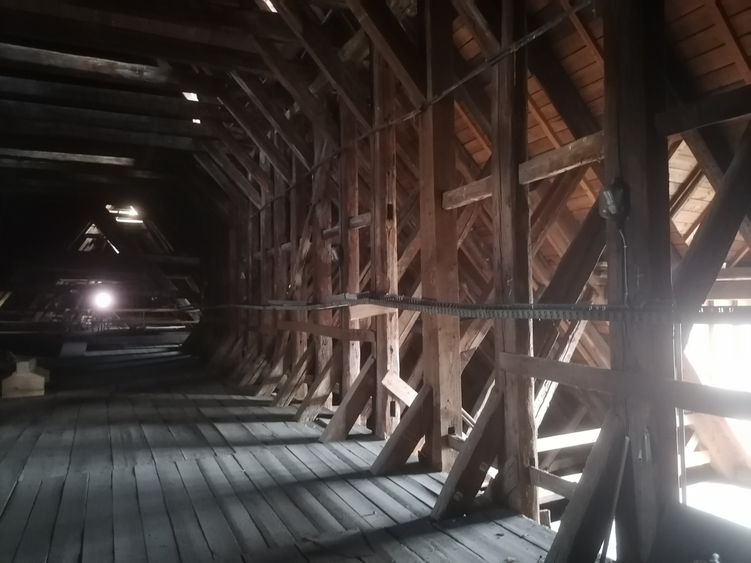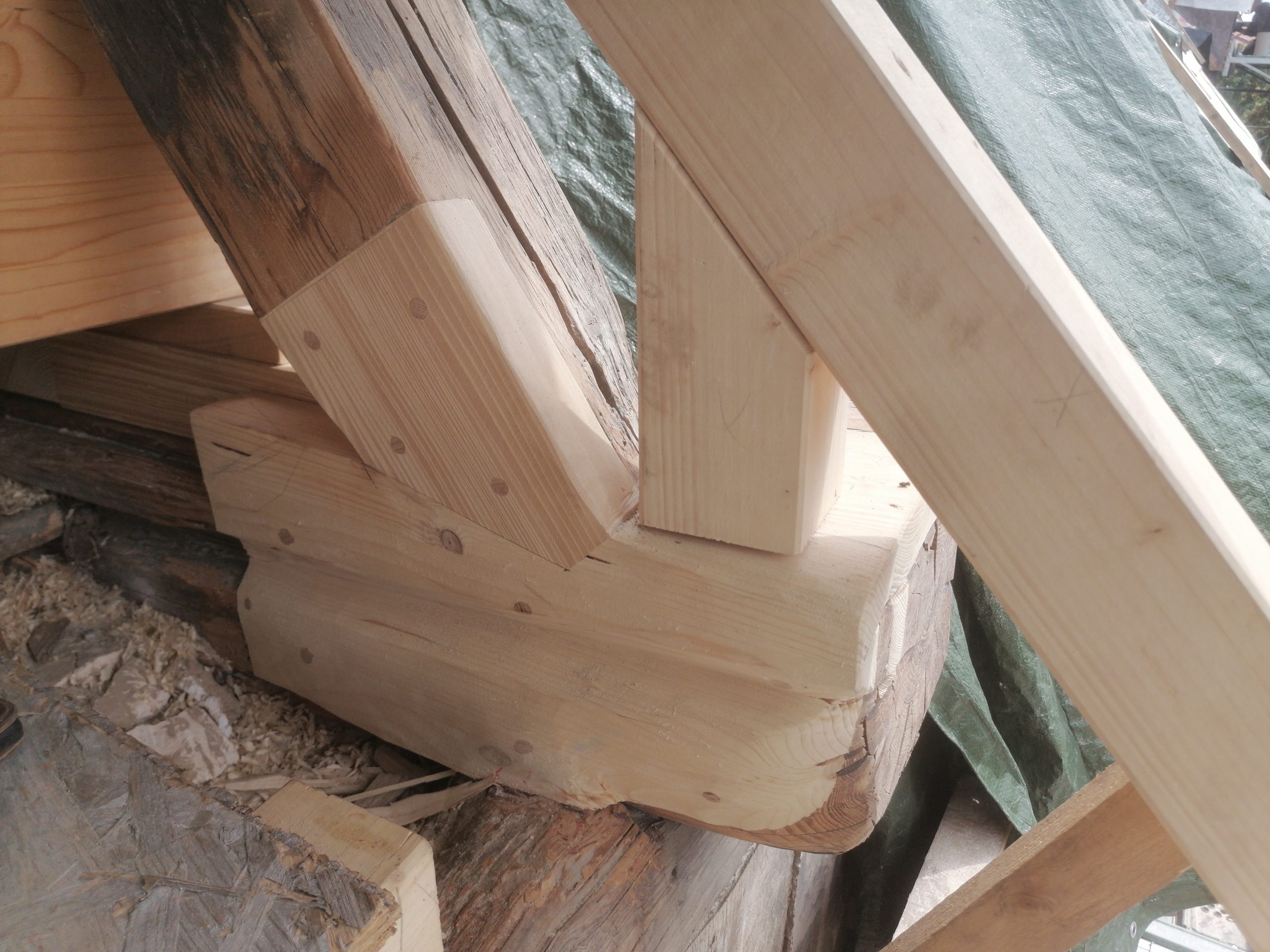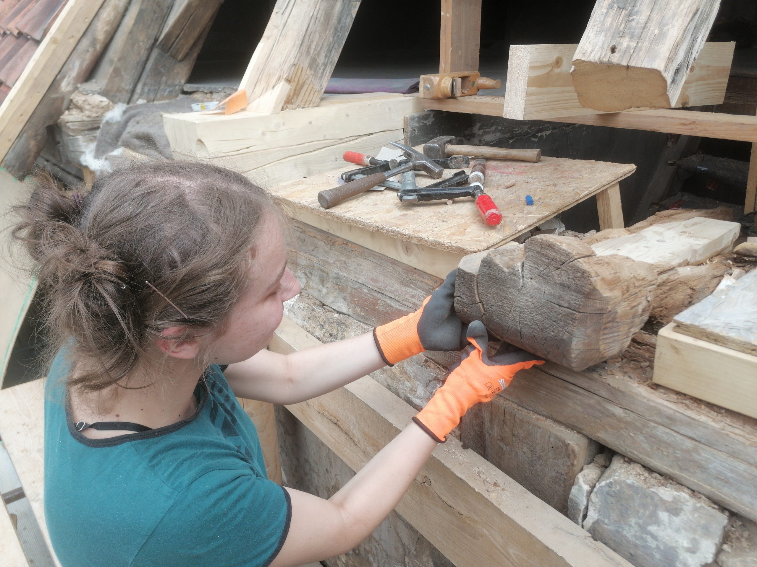 Die Student:innen restaurierten mit ihrem Anleitern die Fachwerkkonstruktion – hier das nordwestliche Zwerchhaus – der Renaissance .