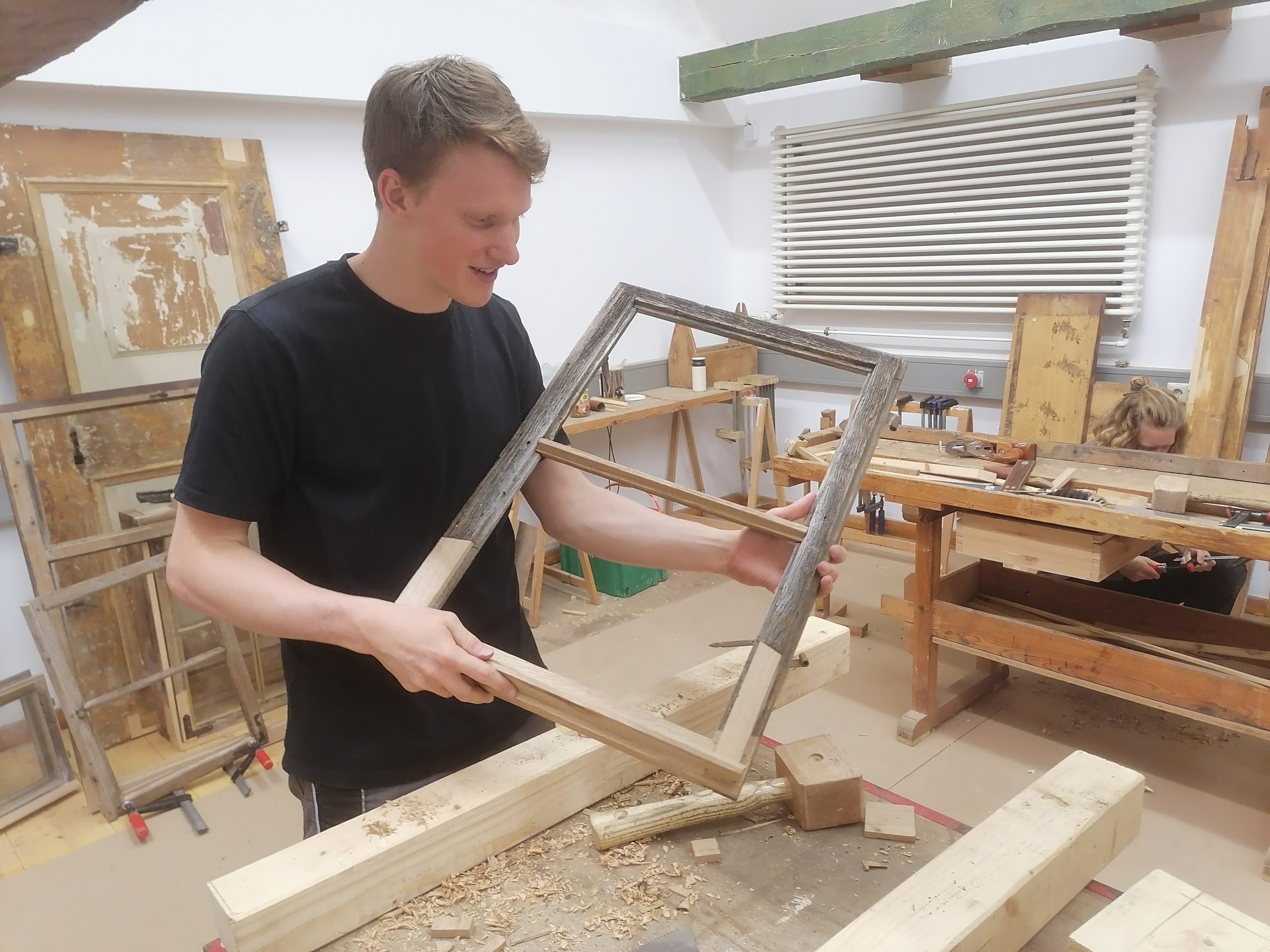 Together with their instructors, the students restored the half timber construction – here the Dwarf house of the half-timbered house fom the Renaissance time.
