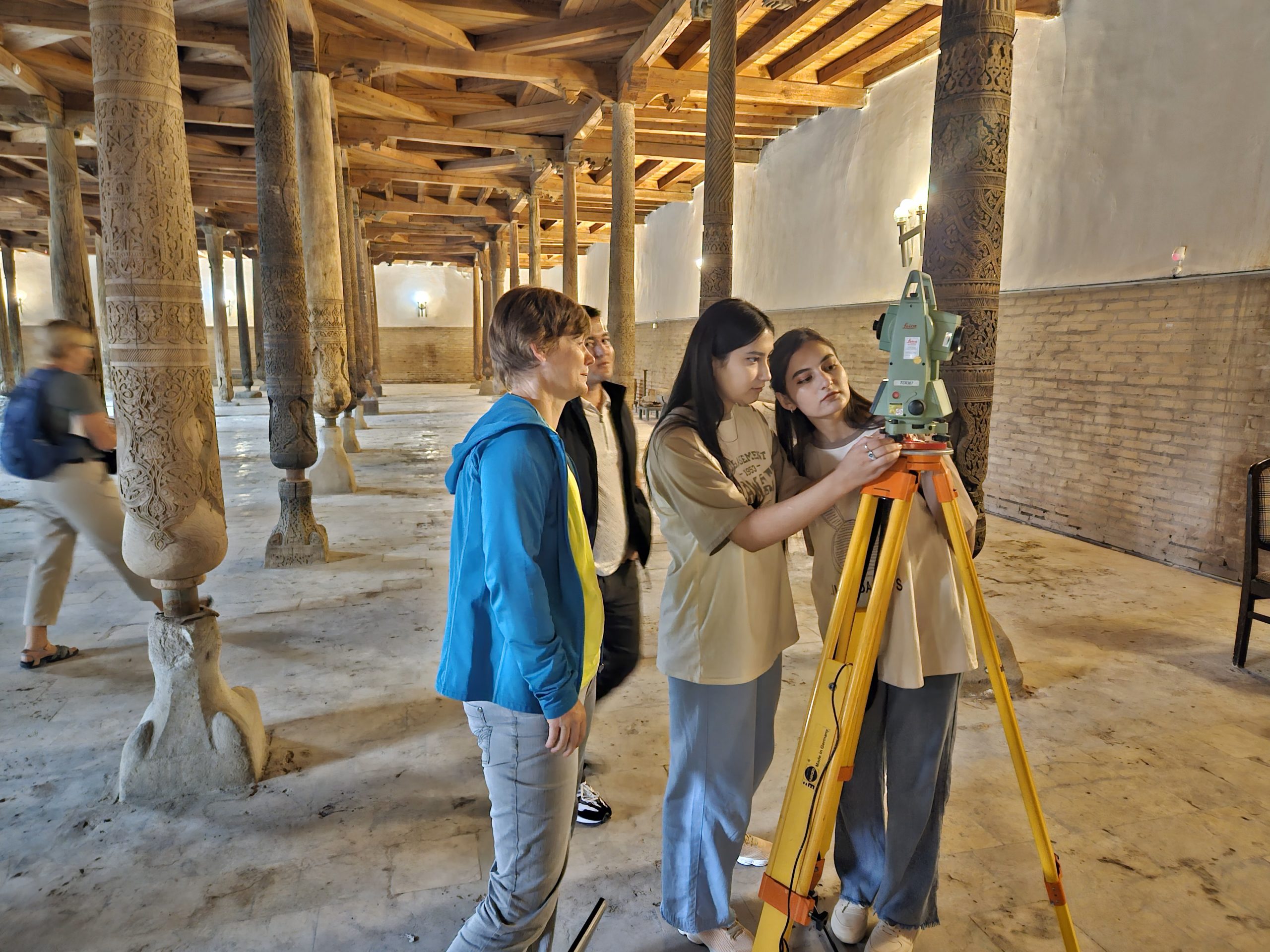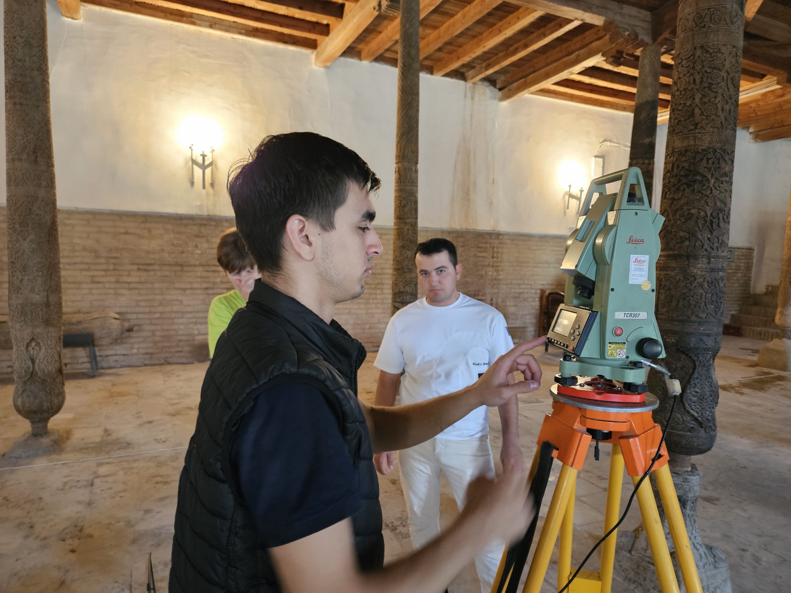 A fourth working group learns the precise surveying of the mosque using a tachymeter and creates a floor plan and cross-section of the mosque.