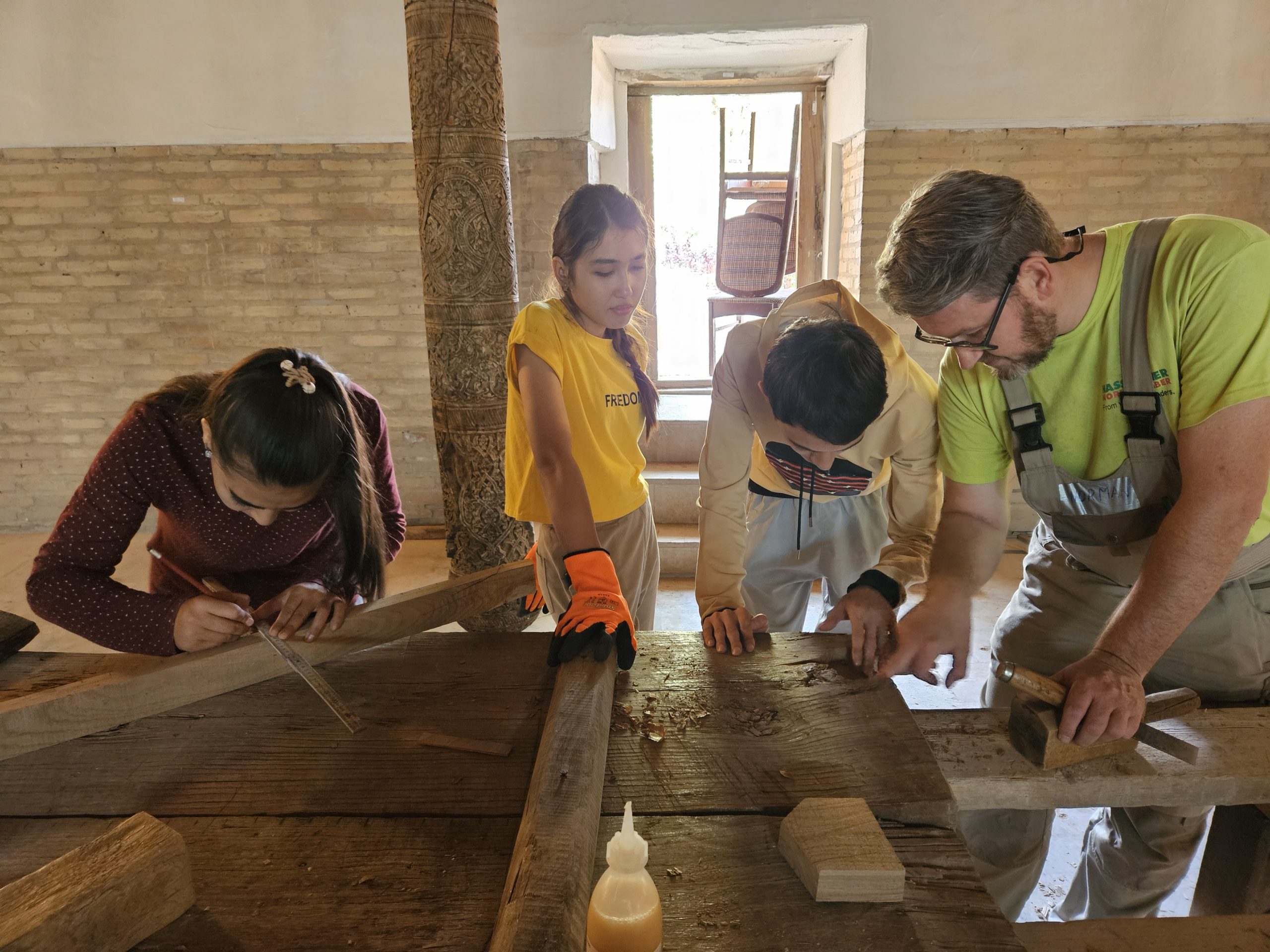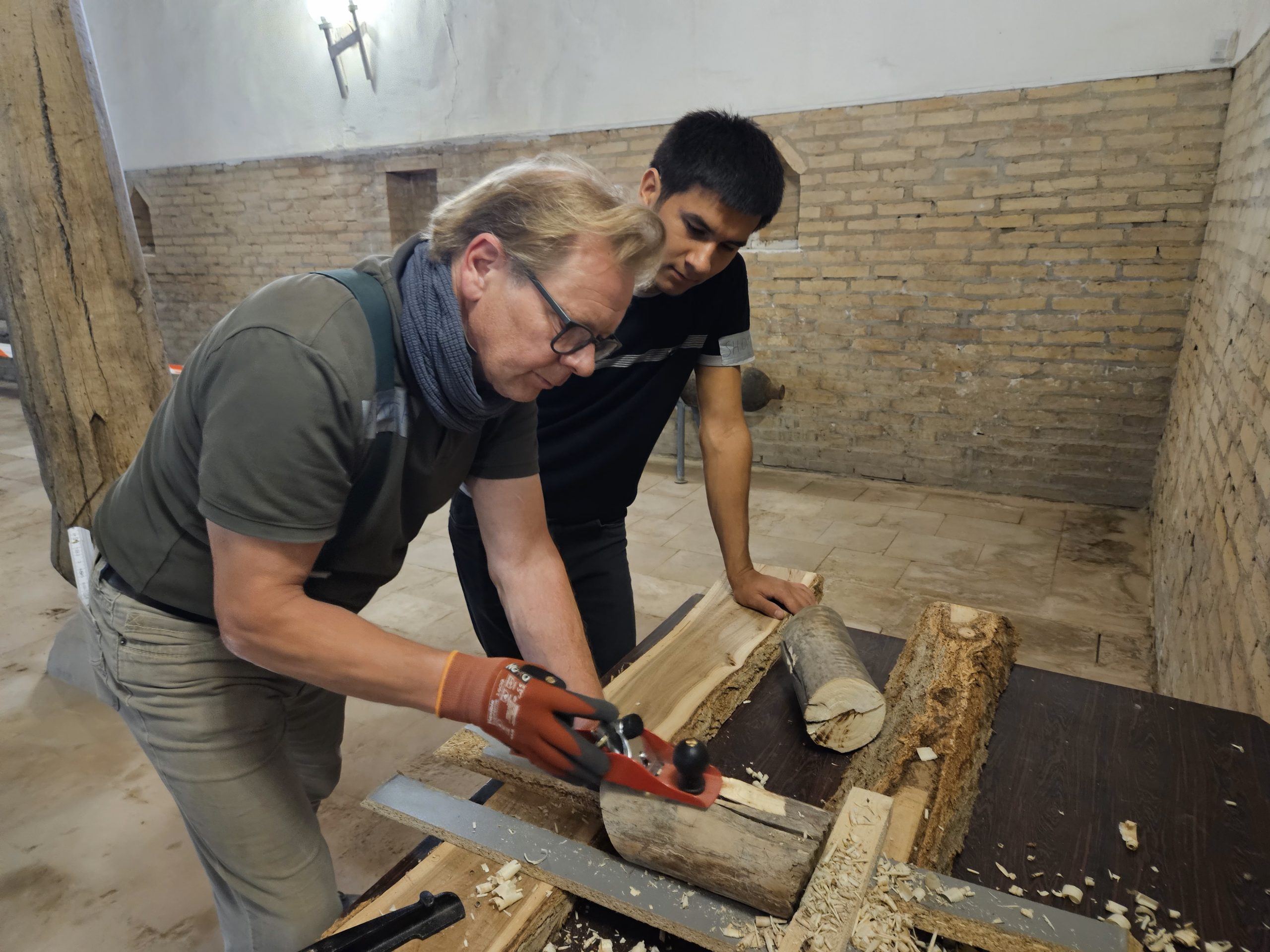 Die Umsetzung des nachhaltigen und Substanz schonenden Restaurierungskonzeptes im Rahmen des Projektes „Erhaltung der Kulturbauten in ihrer Authentizität – ein usbekisch-deutsches Projekt“, beginnt mit dem 1.Seminar des Fachwerkzentrums mit einem externen Fachexperten und Studierenden der Urgench State University und Turin Polytechnic University Tashkent im September 2023: