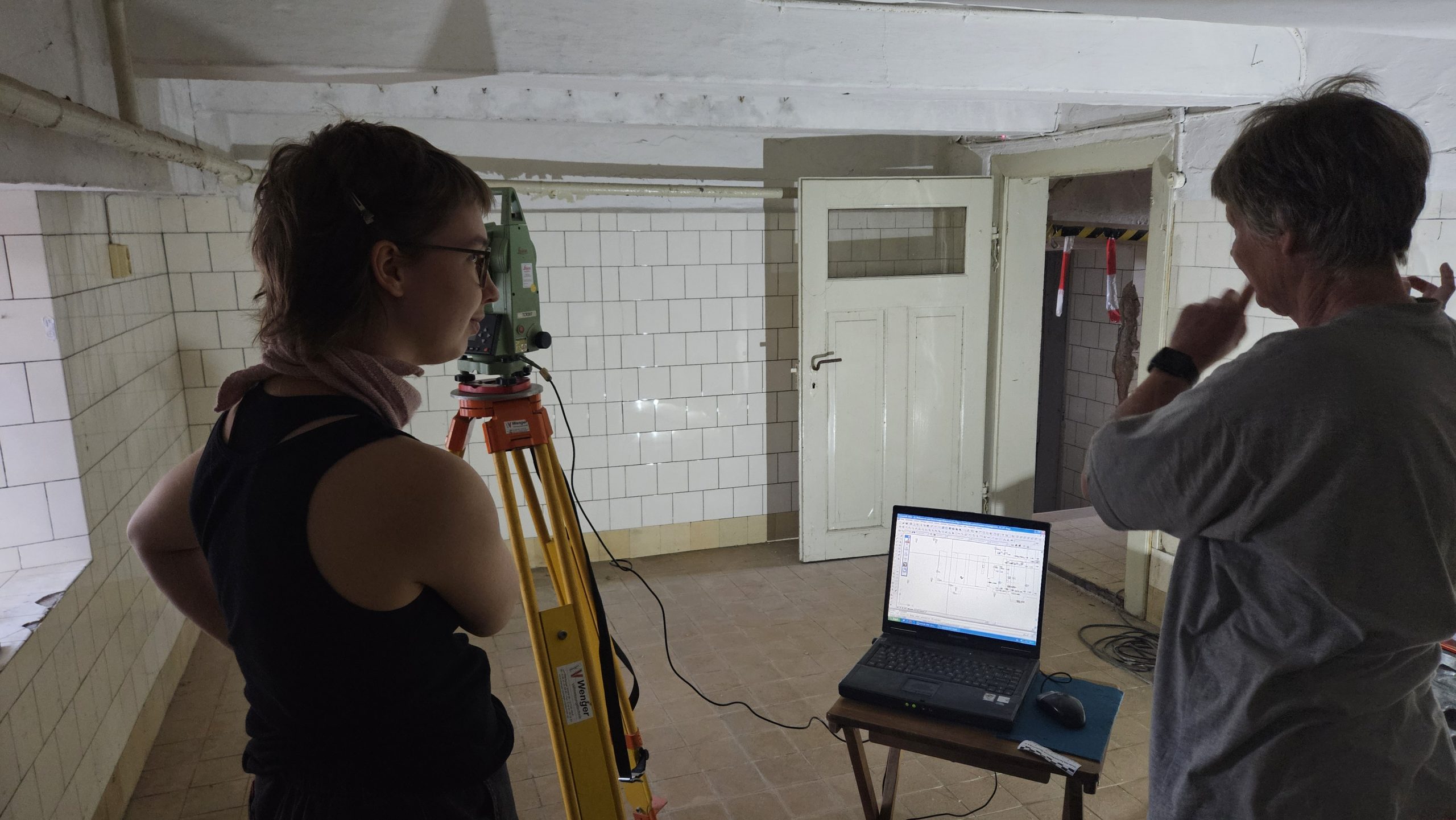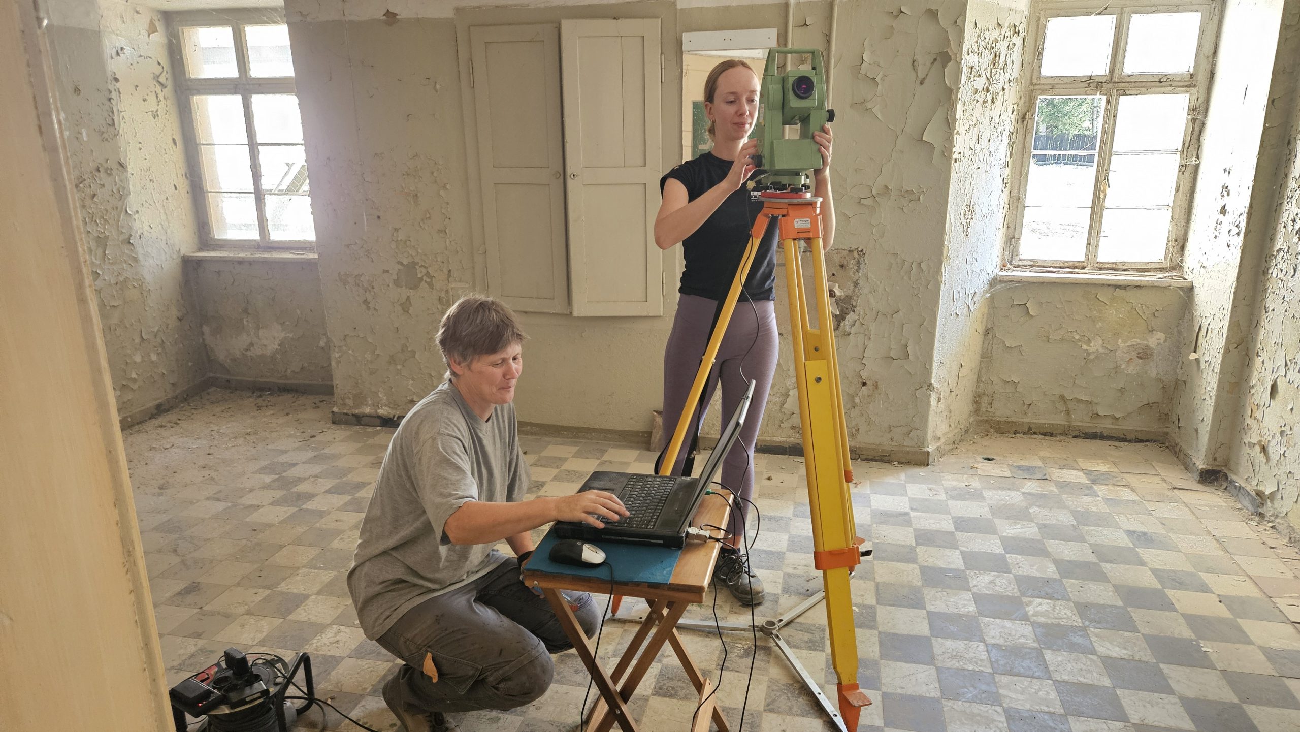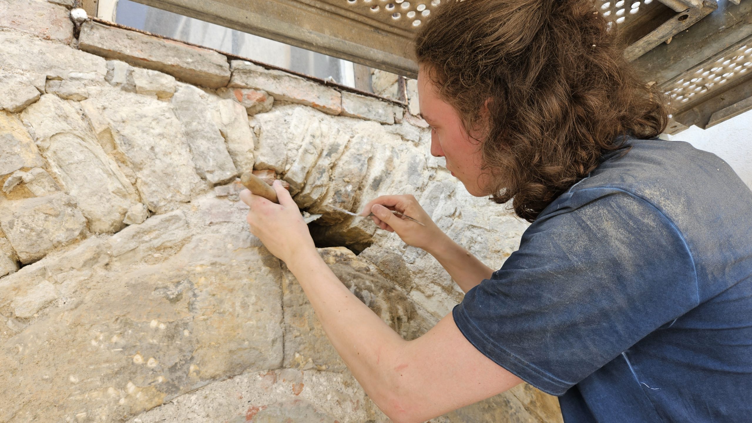 The students from across the country, along with their instructor, removed the more recent cement plasters from the facade. The medieval facade, which has undergone changes during the Renaissance and Baroque periods, displays many phases of remodeling. Under supervision, open joints were closed with lime mortar, and historical plasters and coatings were mapped.