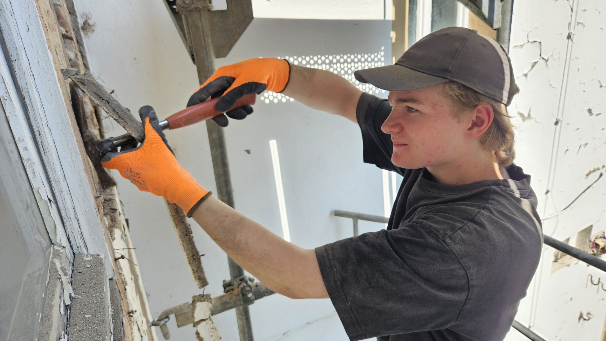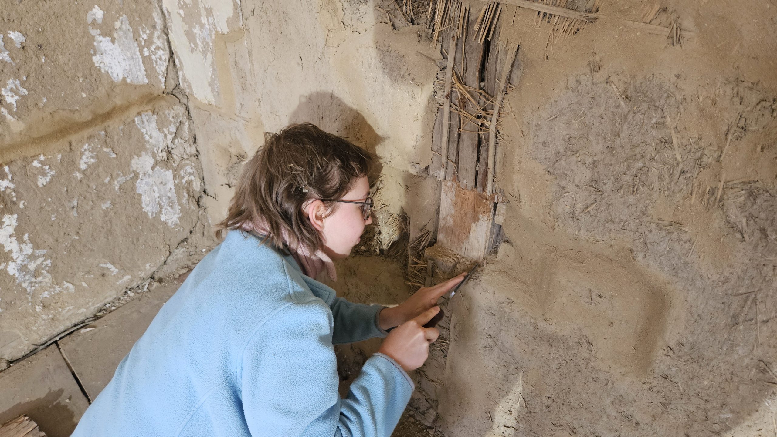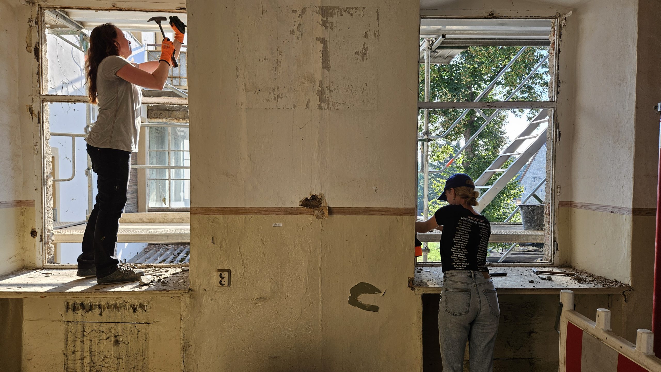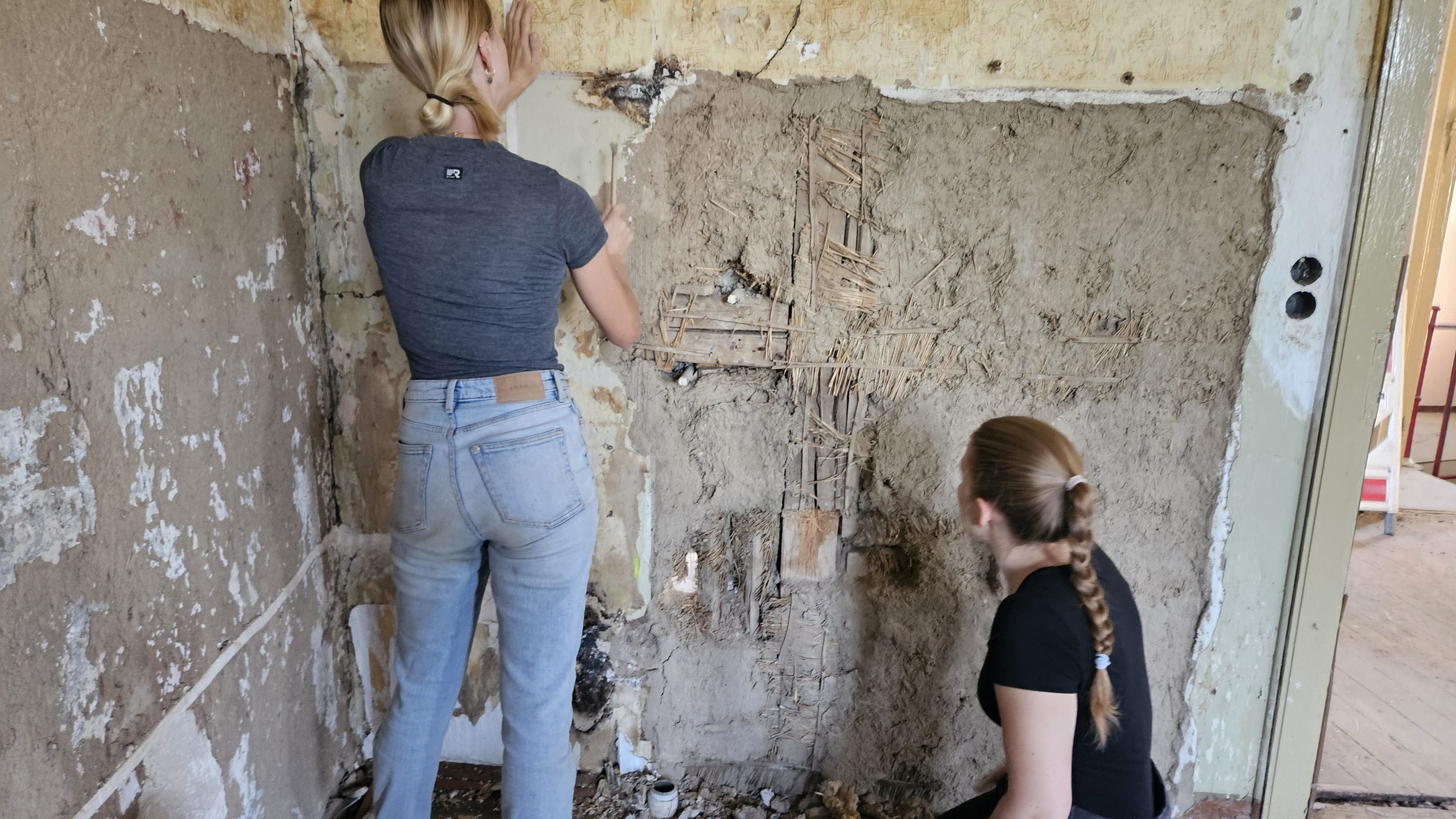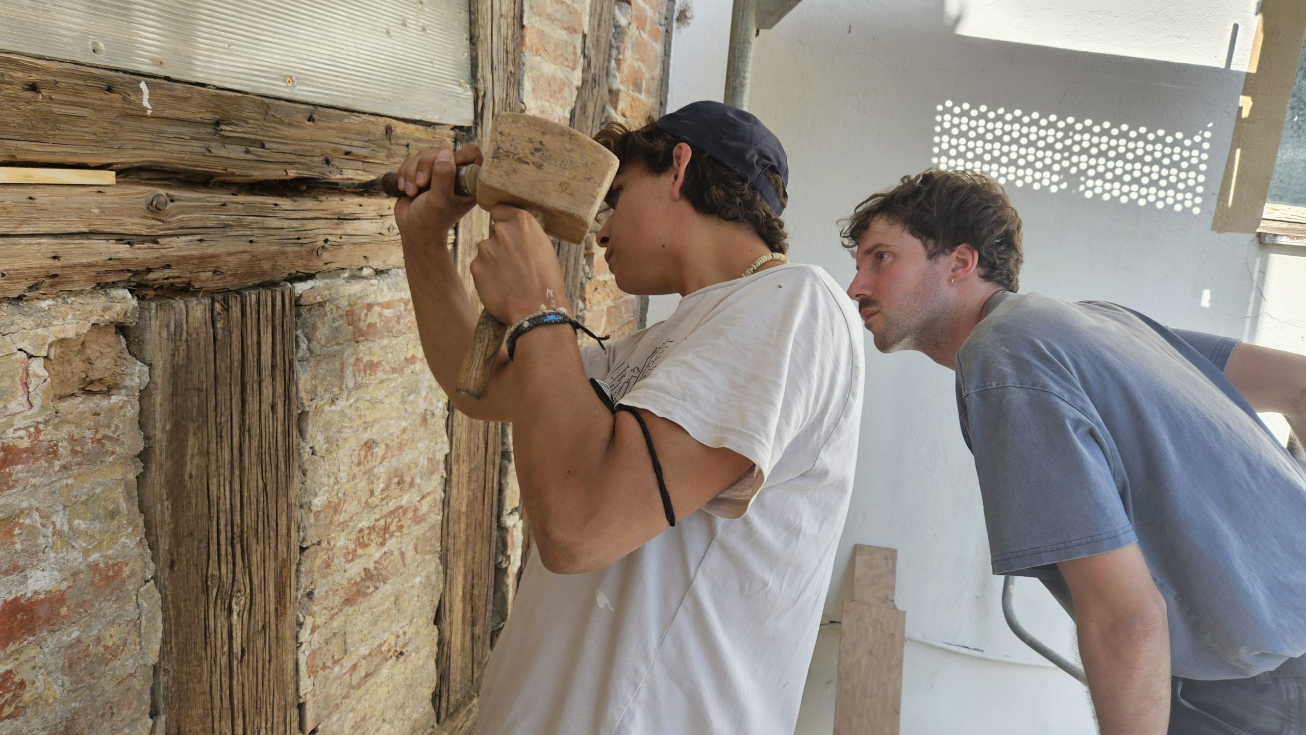 Die Student:innen aus dem gesamten Bundesgebiet nahmen mit ihrem Anleiter die jüngeren Zementputze an der Fassade ab. Die mittelalterliche Fassade mit Veränderungen in der Renaissance / Barockzeit zeigt viele Umbauphasen. Unter Anleitung wurden offene Fugen mit einem Kalkmörtel geschlossen und historische Putze und Fassungen kartiert.