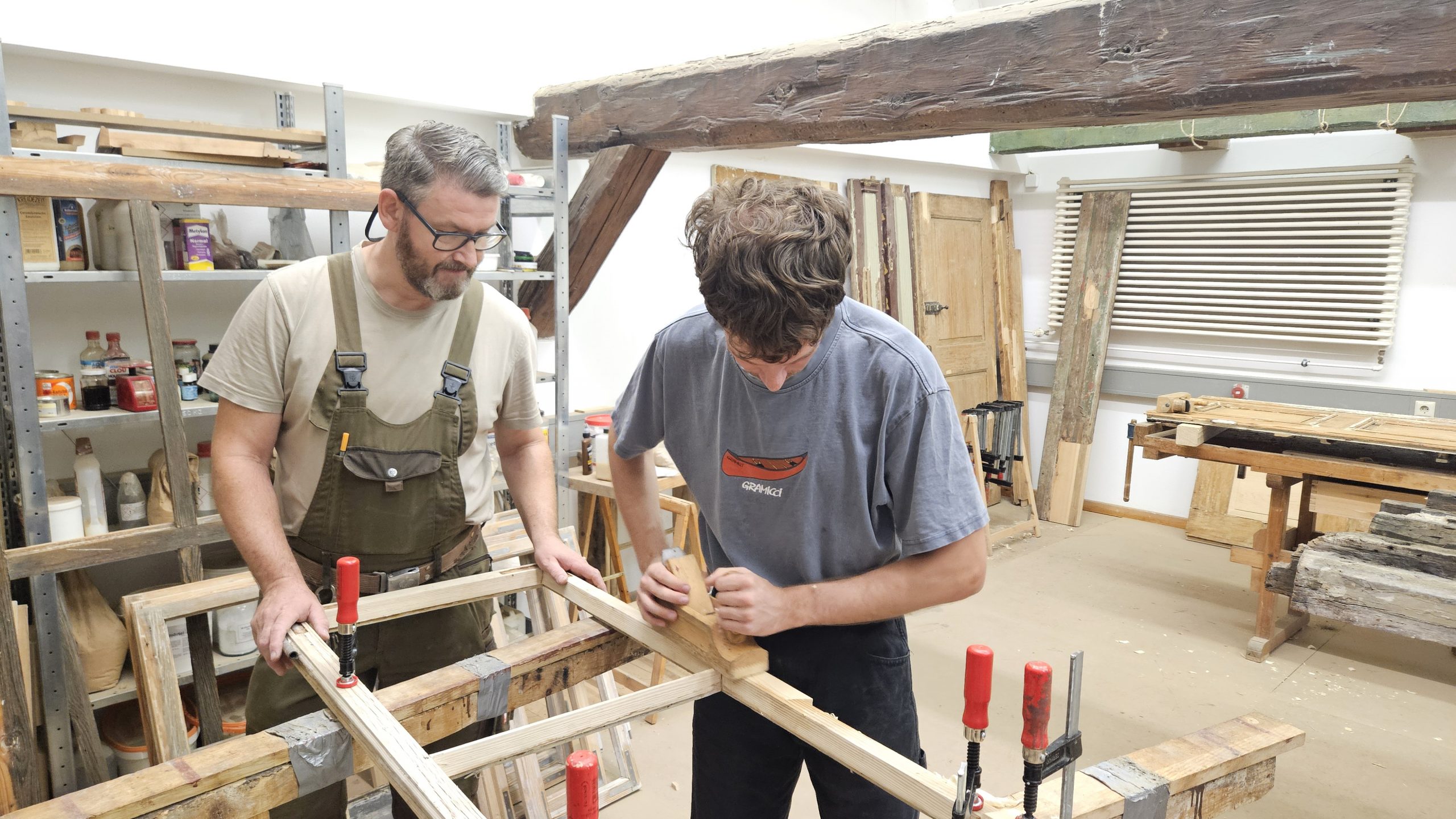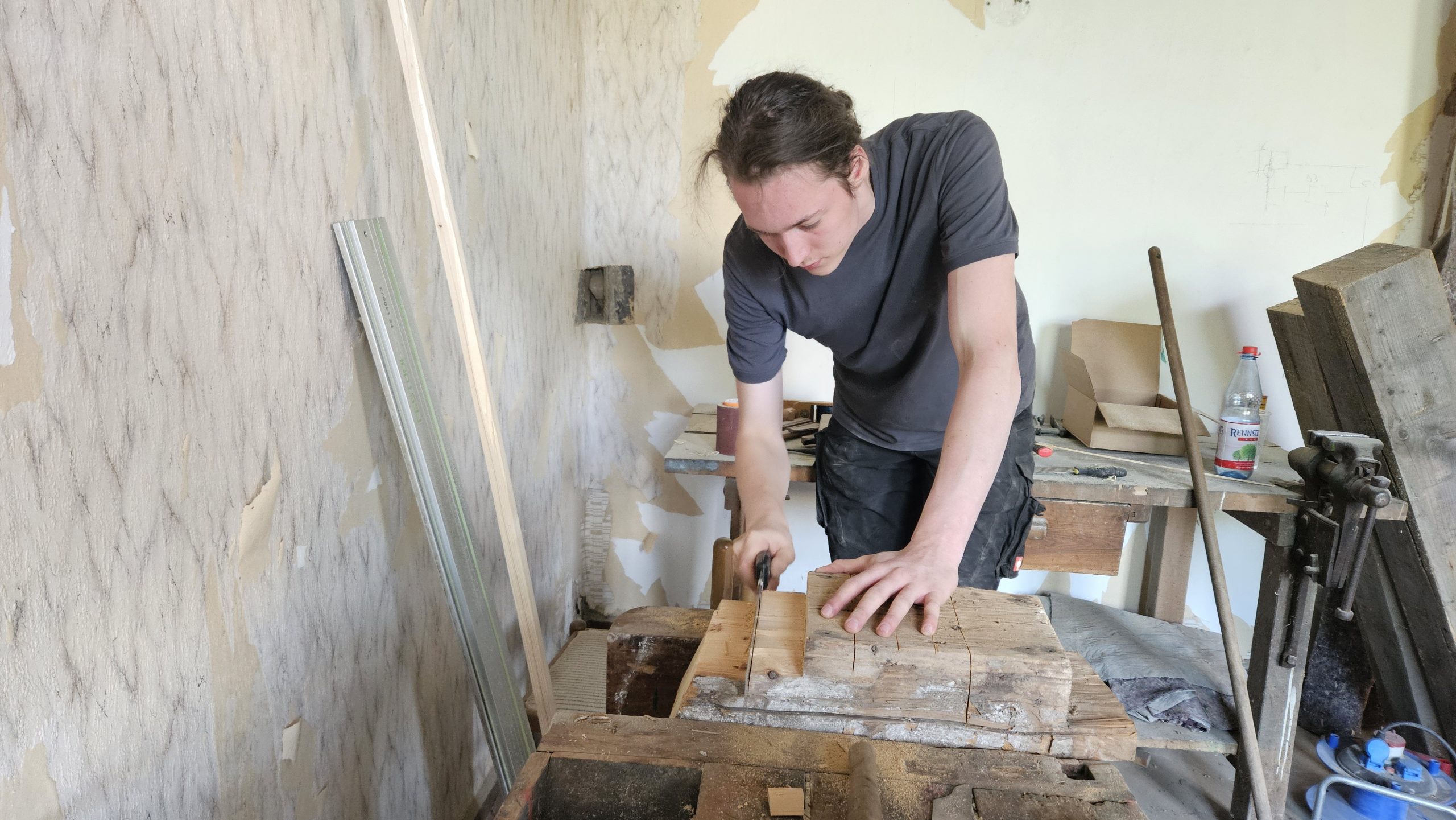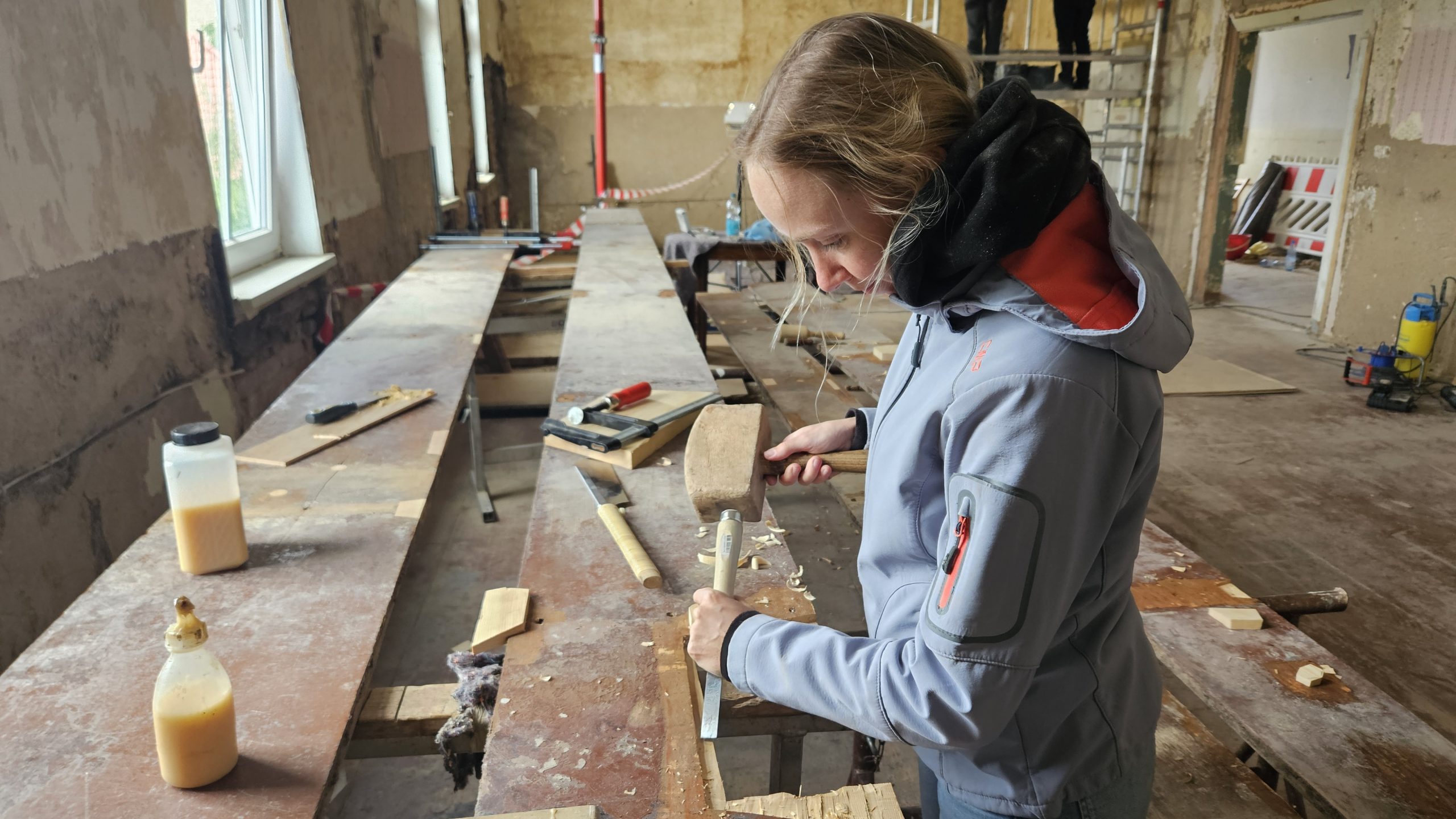 Vom 02.09.2014 bis zum 13.09.2024 fand in der Stadt Gröningen, Alte Kirchstraße 7 mit Student:innen des Internationalen Bauordens ein Seminar des Fachwerkzentrums mit Unterstützung eines Steinmetzmeisters und Restaurators statt.