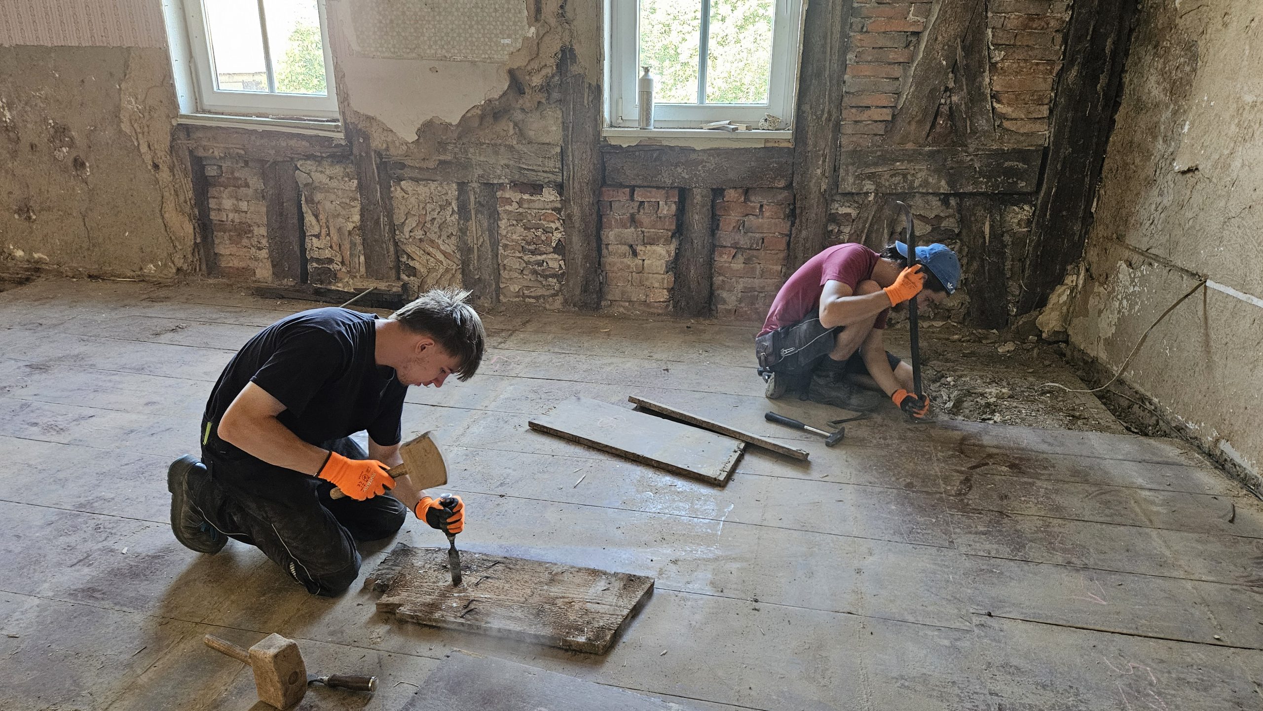 From September 2, 2014, to September 13, 2024, a seminar of the Fachwerkzentrum took place at Alte Kirchstraße 7 in the city of Gröningen, with students from the Internationaler Bauorden, supported by a master stonemason and restorer.