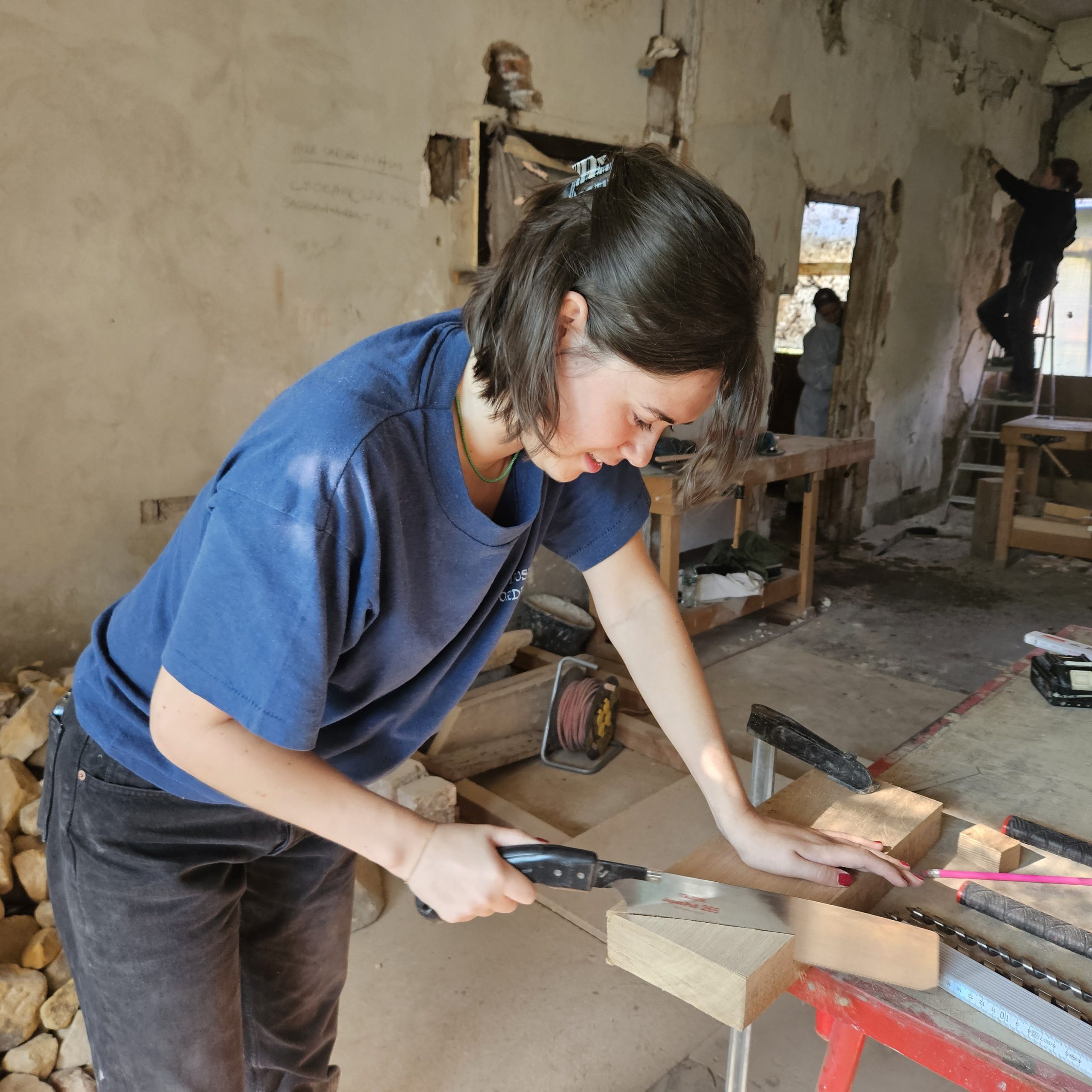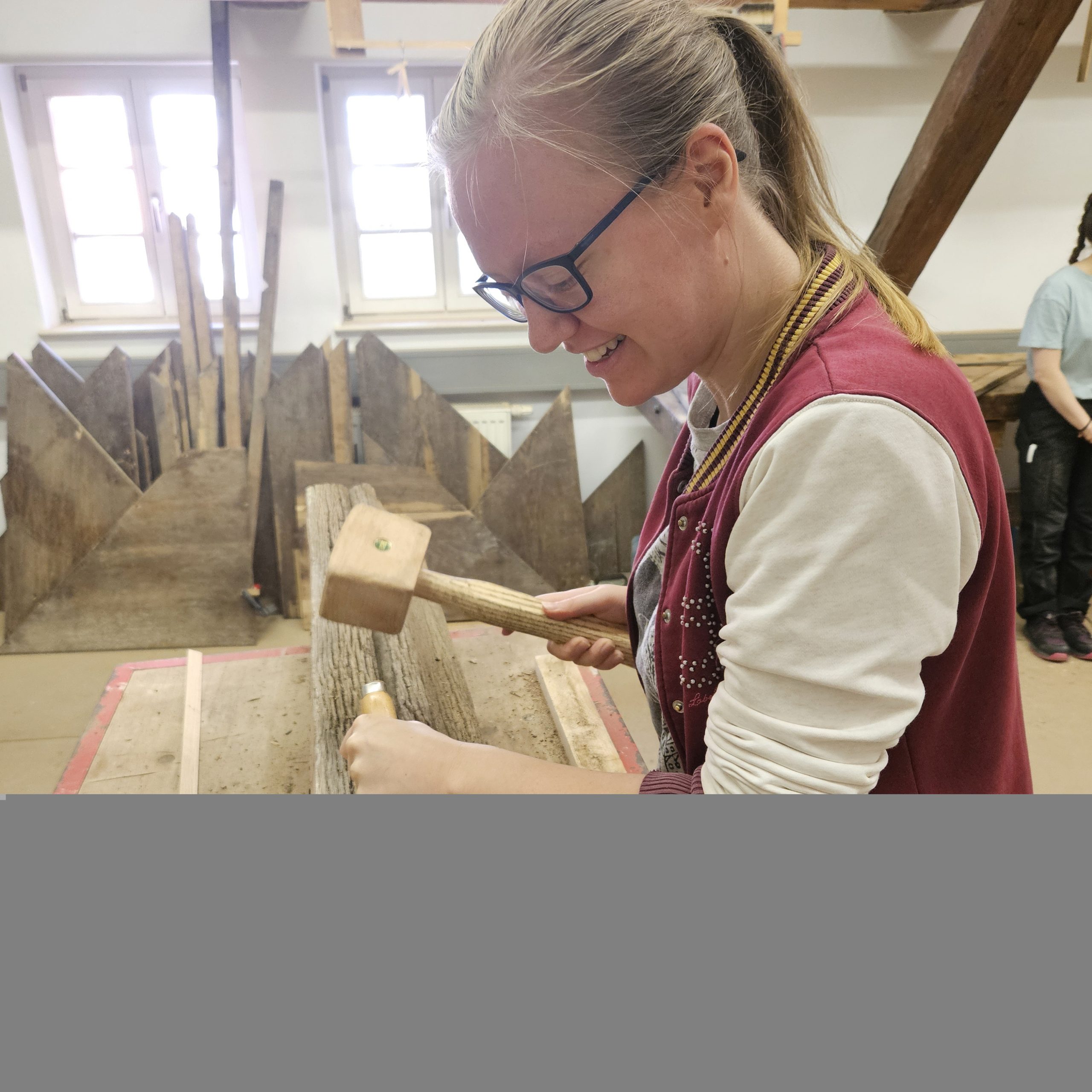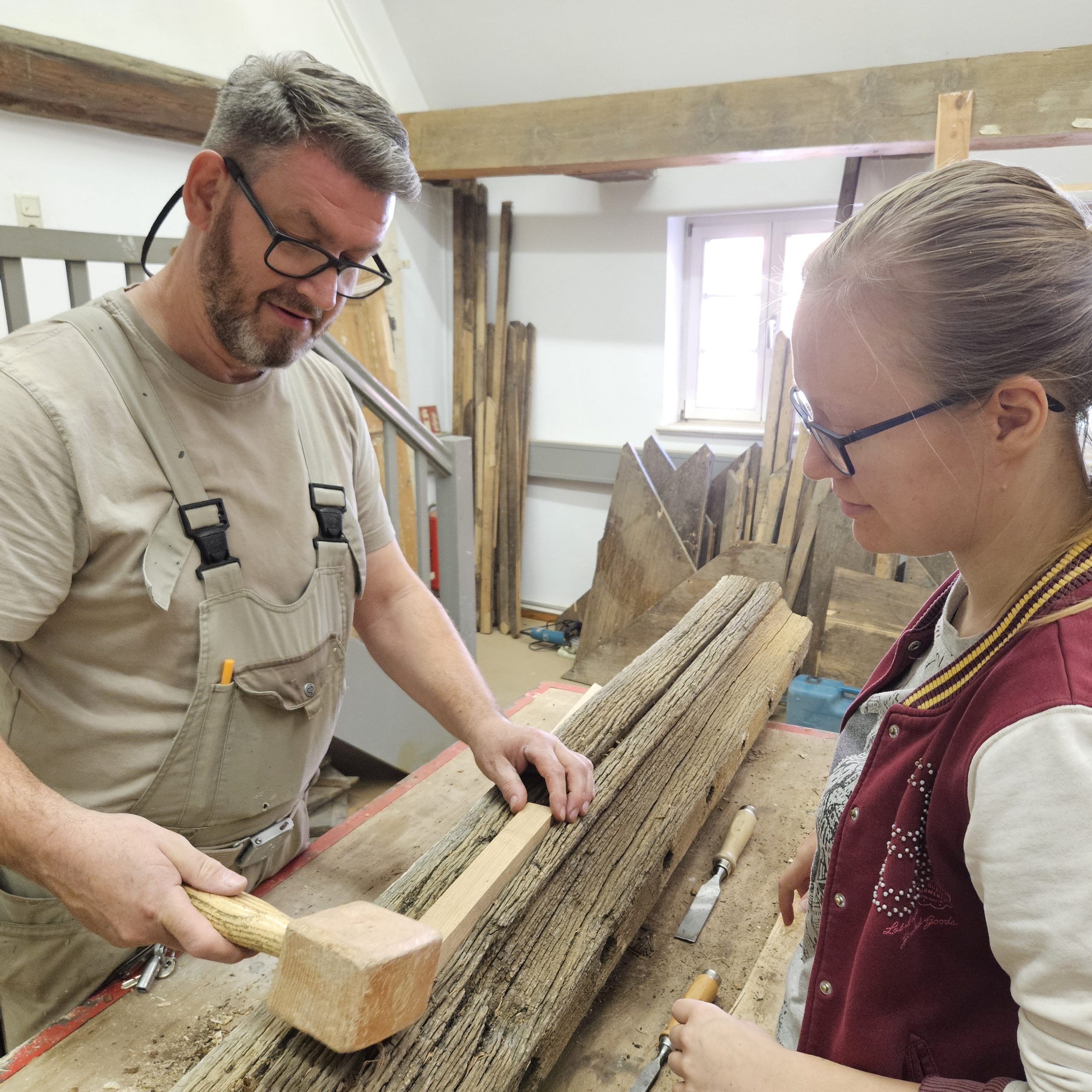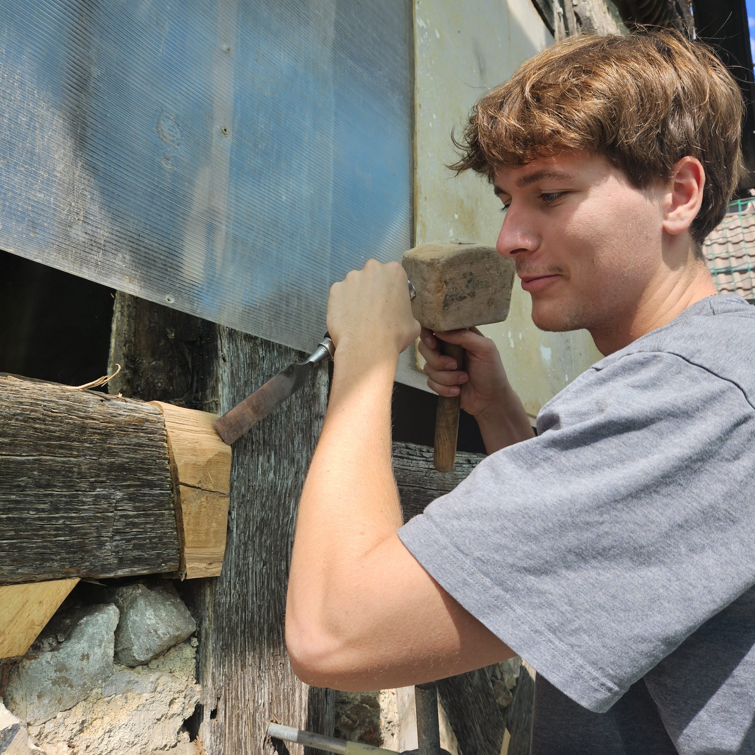 Gemeinsam restaurierten wir die Fachwerkkonstruktion des aus dem 16. Jahrhundert stammenden Adelshofes. Aussetzungsarbeiten starteten an den Streben, Riegel und Ständern, im Dachgeschoss wurden die Sparren, die liegende Stuhlsäule und der Deckenbalken des Daches aus der Renaissance restauriert.
