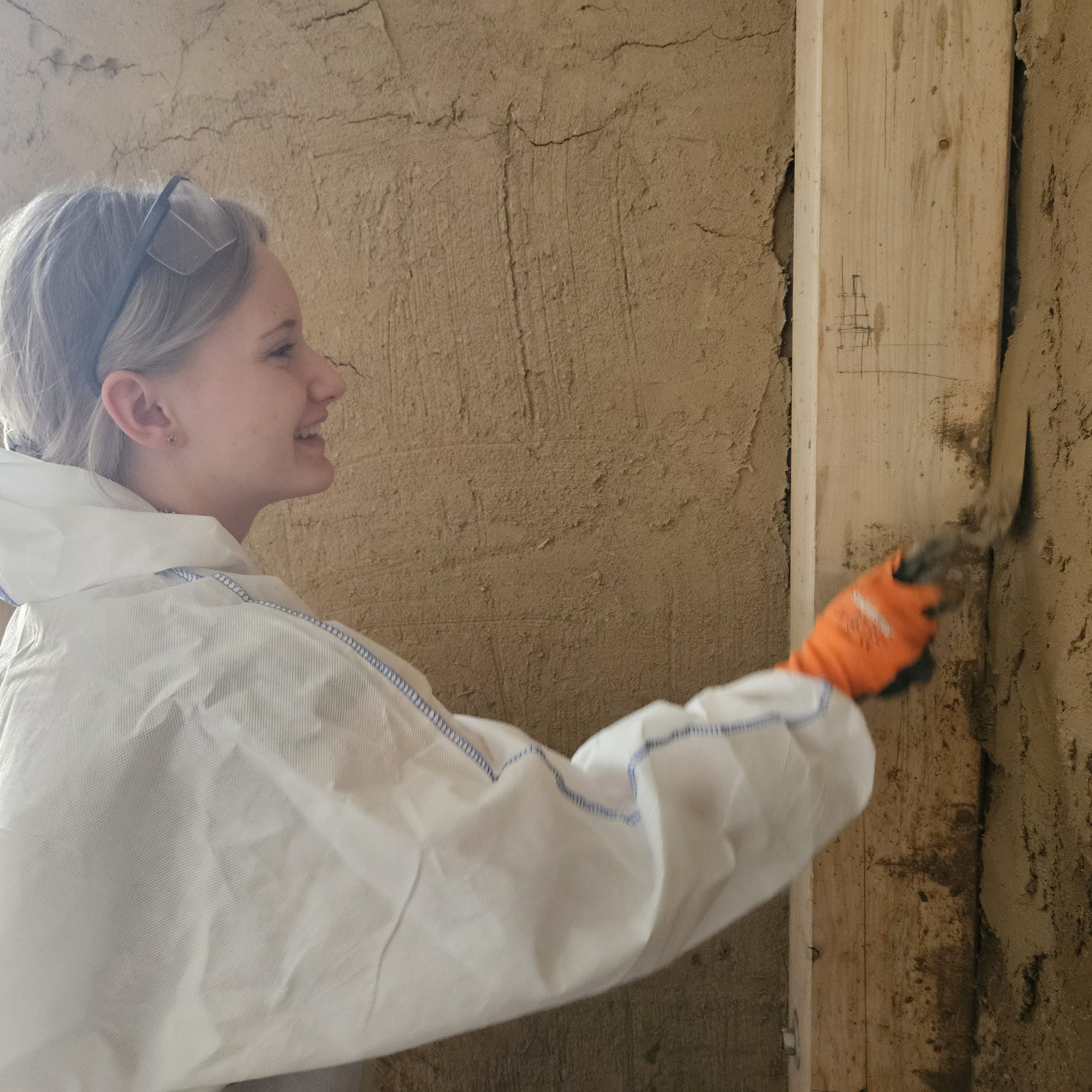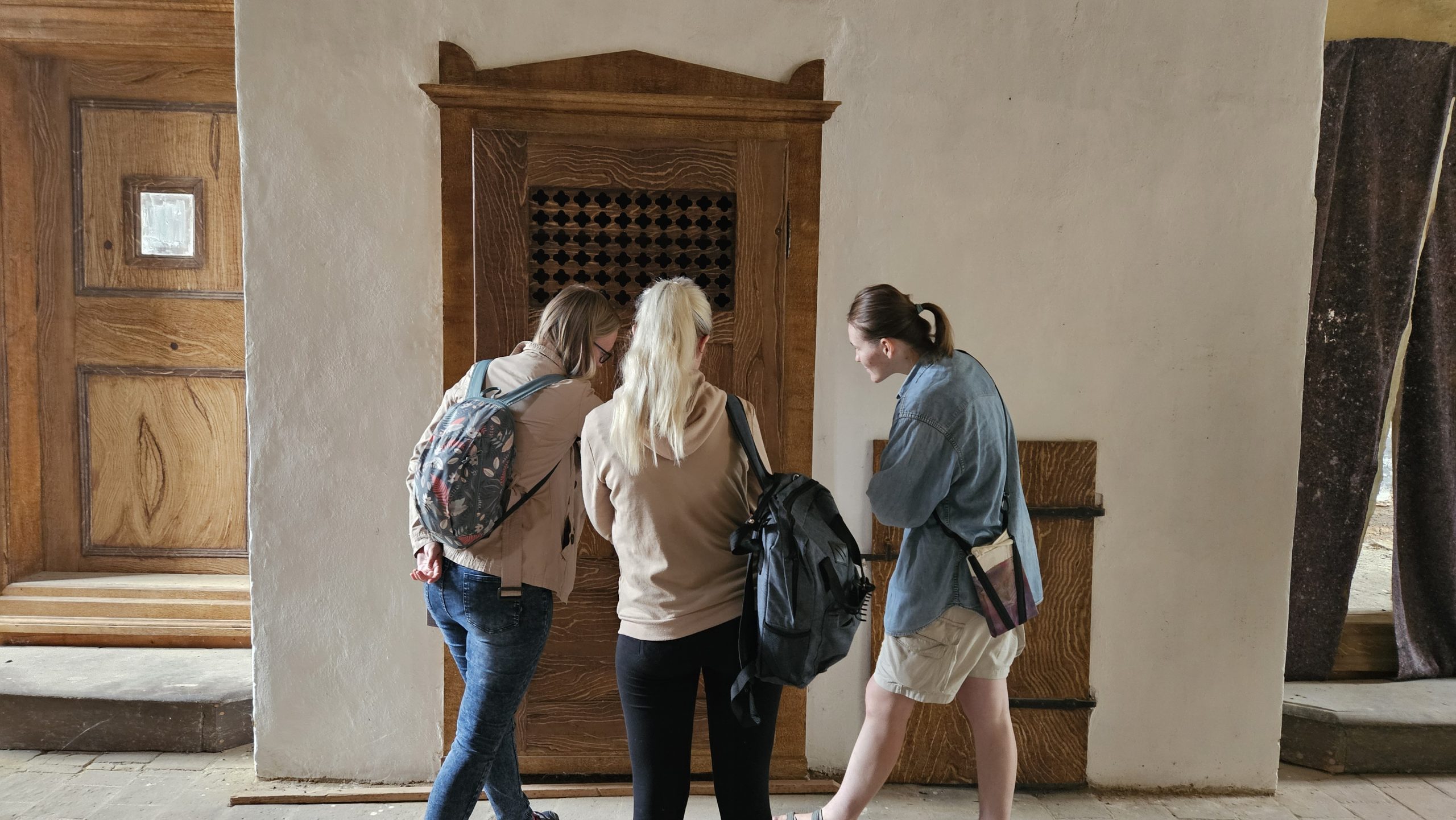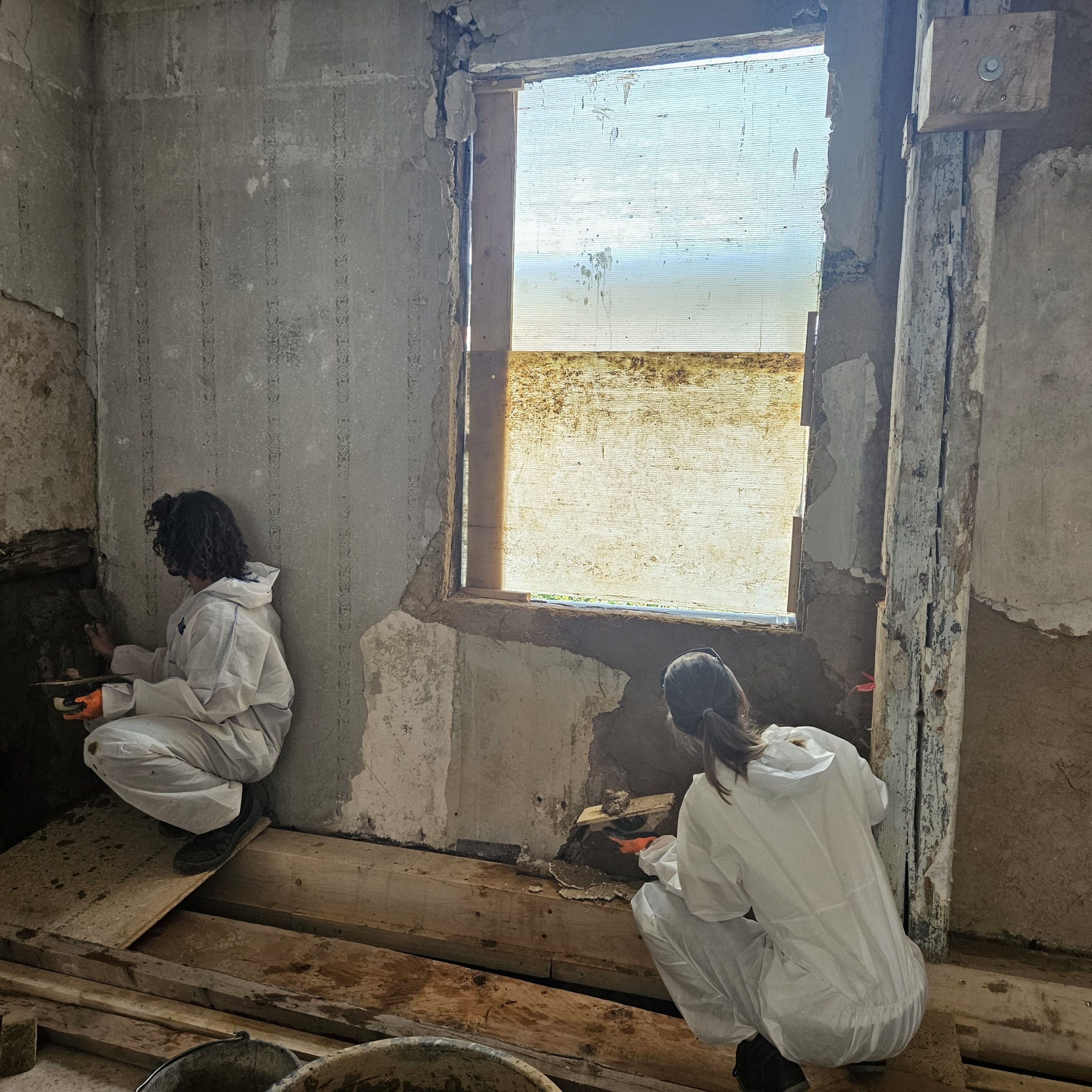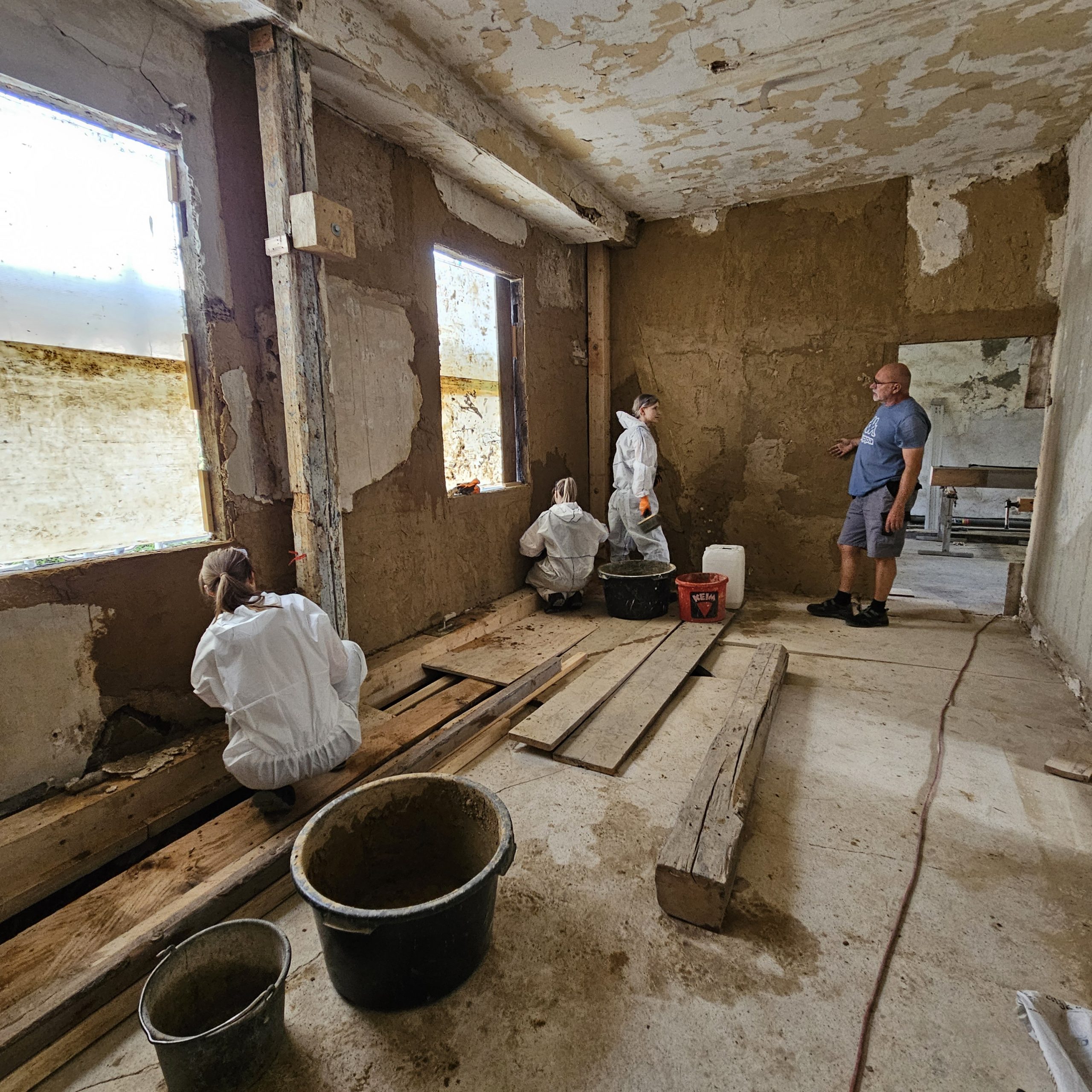 Gemeinsam restaurierten wir die Putze des aus dem 16. Jahrhundert stammenden Adelshofes. Aussetzungsarbeiten in den historischen Putzen starteten mit der Entfernung jüngerer Putze und dem Ausfüllen der Fehlstellen mit Lehm- und Kalkputzen.
