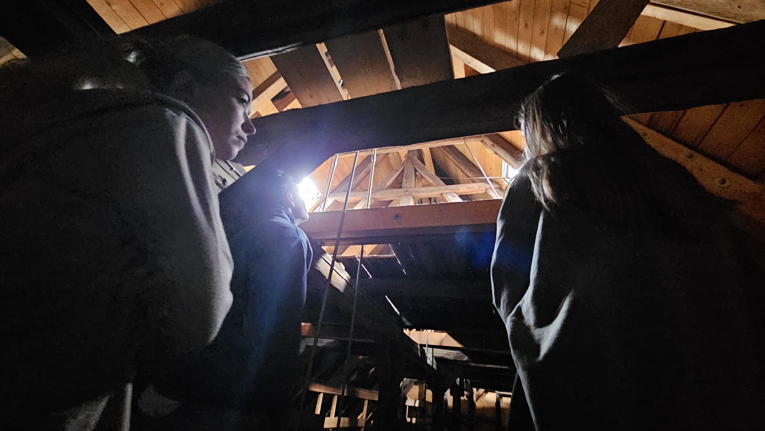 Suspension work started on the braces, bars and posts, in the attic the rafters, the horizontal chair column and the ceiling beam of the Renaissance roof were restored.